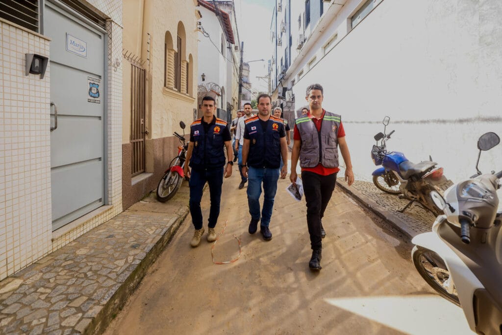 Ao lado da secretária de Estado de Desenvolvimento Social (Sedese), Alê Portela, e do secretário de Estado de Infraestrutura, Mobilidade e Parcerias (Seinfra), Pedro Bruno,o coordenador da Cedec detalhou as ações que estão sendo tomadas na cidade desde as chuvas e reforçou que o órgão continuará atuando para mitigar os efeitos provocados na região.