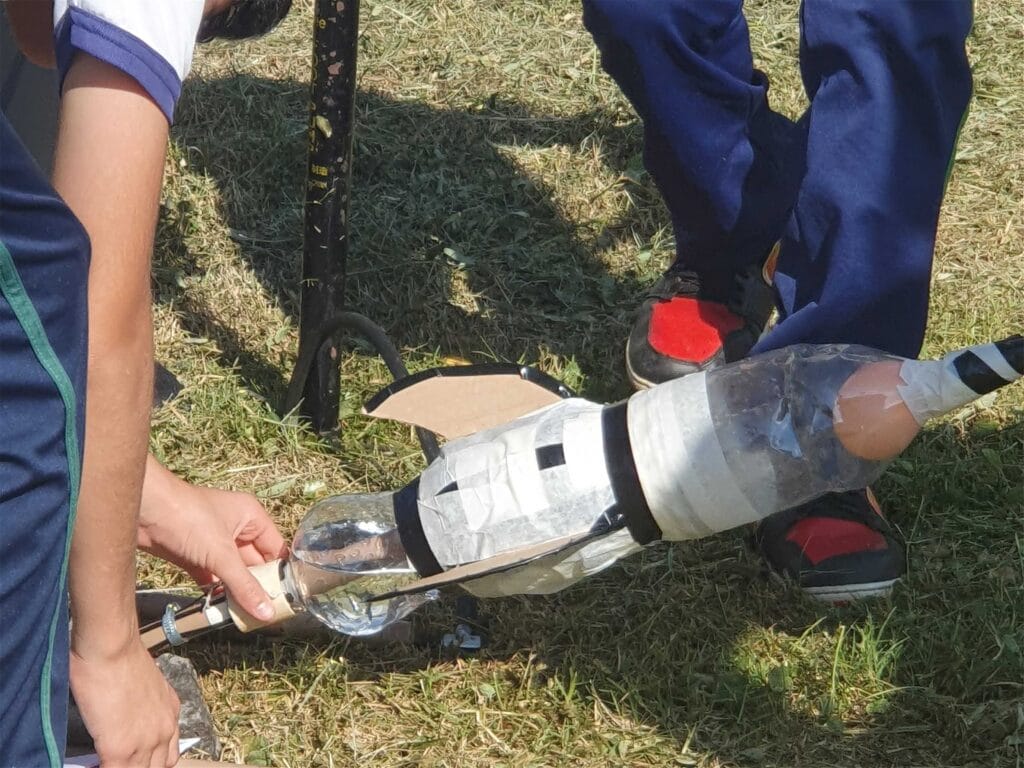 Ao longo de 2025, professores e estudantes da rede municipal participaram de oficinas práticas voltadas à construção e lançamento de foguetes, em uma parceria com docentes de Física da Universidade Federal de Itajubá (UNIFEI) – Campus Itabira e com a equipe Falcon-6 Rocket Design, grupo de competição tecnológica formado por estudantes da própria universidade. A equipe atua na difusão da ciência e no desenvolvimento de projetos aeroespaciais, colocando em prática conhecimentos de diferentes cursos de engenharia por meio da construção de foguetes para competições.